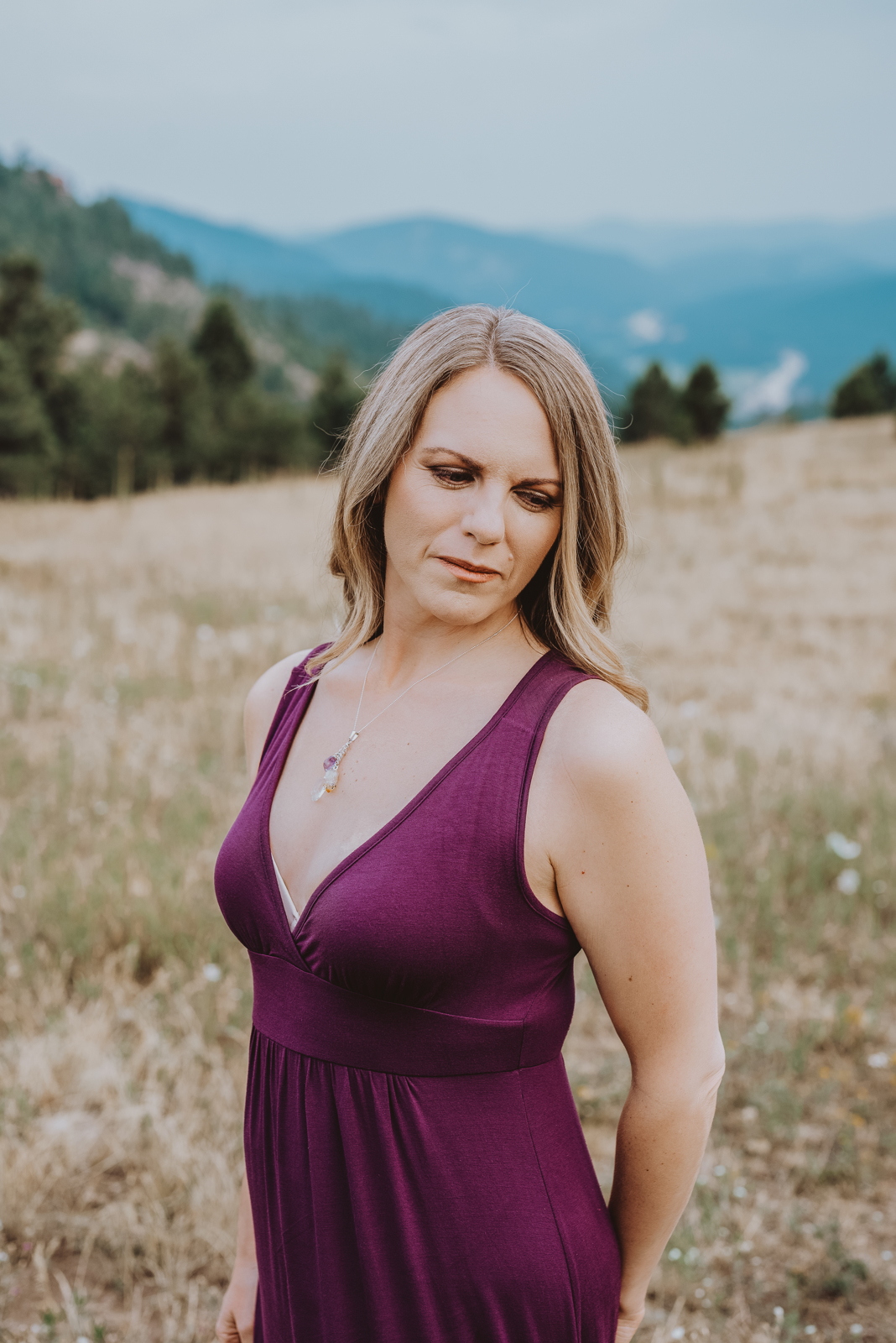 Professional outdoor branding photo session surrounded by Colorado pine forest at Mount Falcon