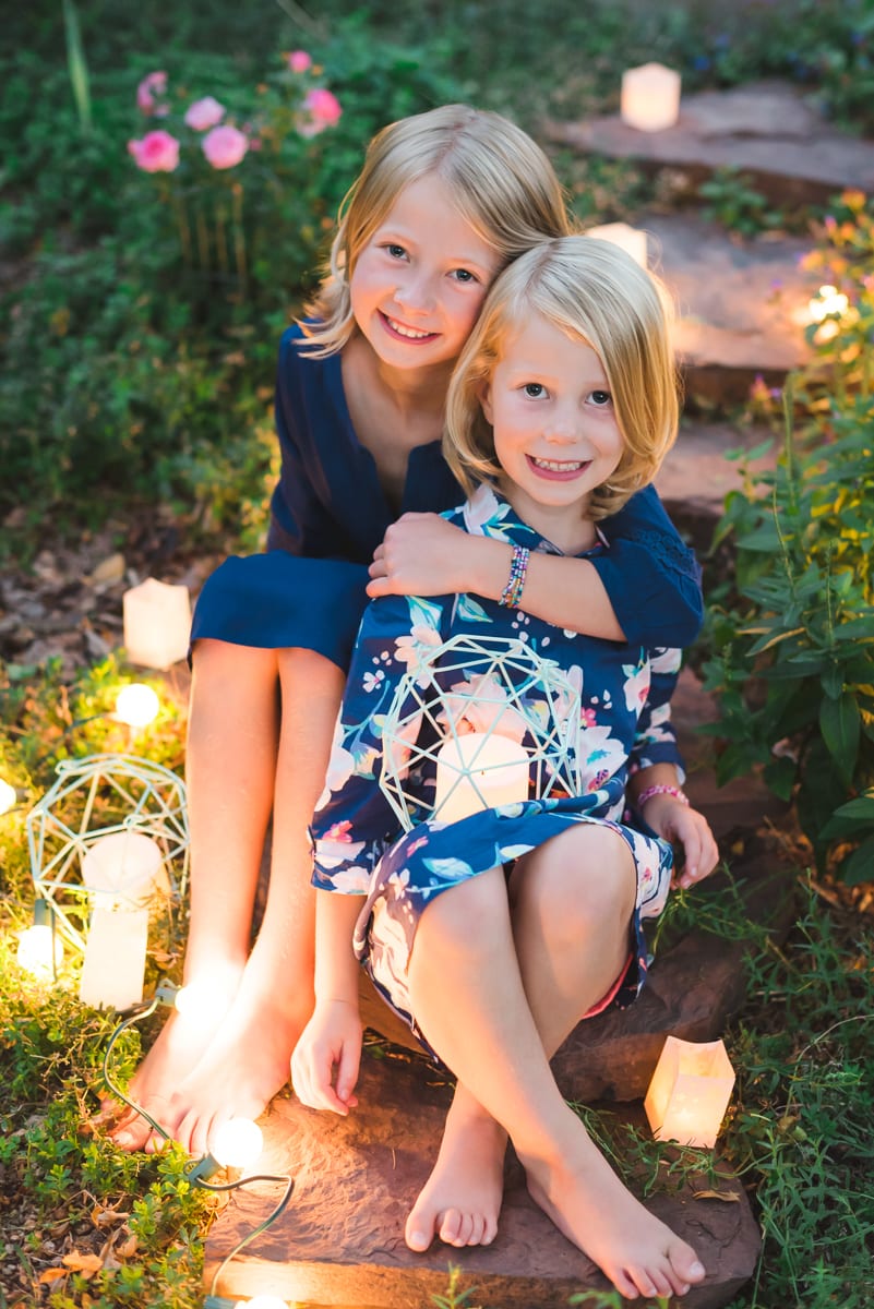 As photographers, we are always talking about the golden hour and how important it is to have adequate lighting when scheduling family photos. That is our ideal situation. But we can actually take creative family photos at night or indoors and still provide wall-worthy prints! The main thing to remember is making sure there is enough ambient light to avoid accidental grainy and blurry photos. Turn on your porch lights and string up some outdoor fairy lights and we are good to go!