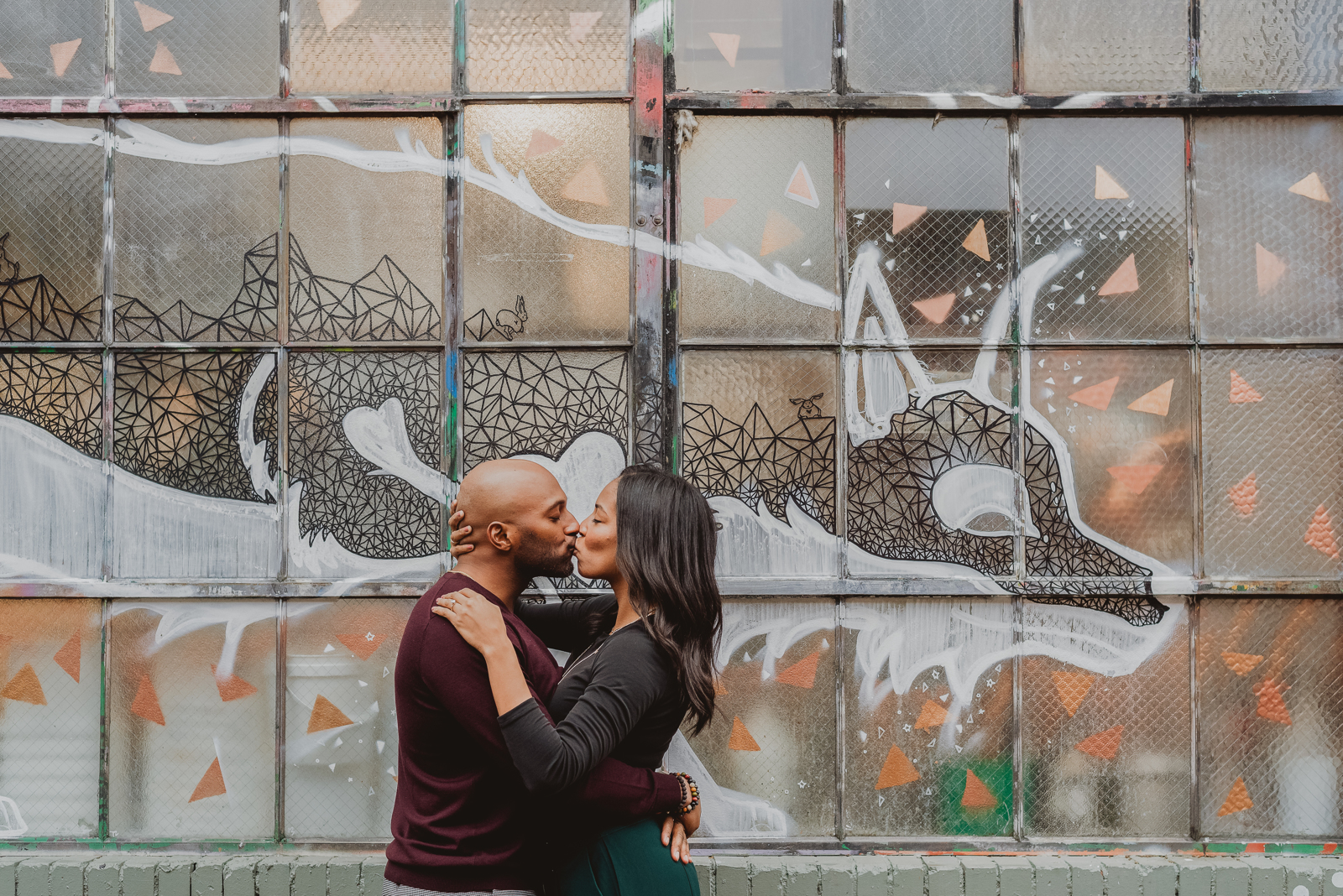 Spring and fall are ideal — mild temperatures, soft light, and comfortable conditions for longer sessions. Summer is great but can be hot on the pavement, so we recommend late-afternoon or evening start times when the buildings provide shade. Winter offers its own magic: overcast skies create beautifully even light, and the murals pop even more against gray December skies. Just dress warmly and plan for a slightly shorter session.