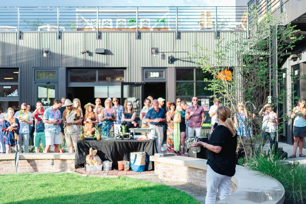 Hosted at the new mixed-use space in the Denver RiNo neighborhood, Backyard on Blake provided the perfect shelter during a brief rainstorm, lending an air of tropical authenticity to the proceedings. Housed in a 1930’s red brick warehouse, the Backyard of Blake has a “carefully curated group of shops, restaurants and offices – representing the best of Colorado makers, artisans and businesses.”