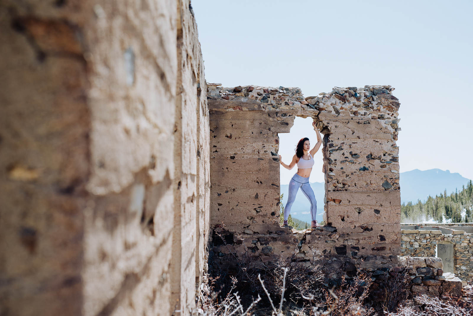 You can get a good workout just about anywhere if you look for it. We traveled around various Colorado locations with these women to show just how versatile your workout routine (and clothing) can be! First, we got some majestic shots on Caribou City, Colorado. This abandoned ghost town is just 20 miles west of Boulder, so of course, we had to take advantage of it! Old brick buildings and expansive Colorado landscapes made these fit and fabulous ladies stand out!