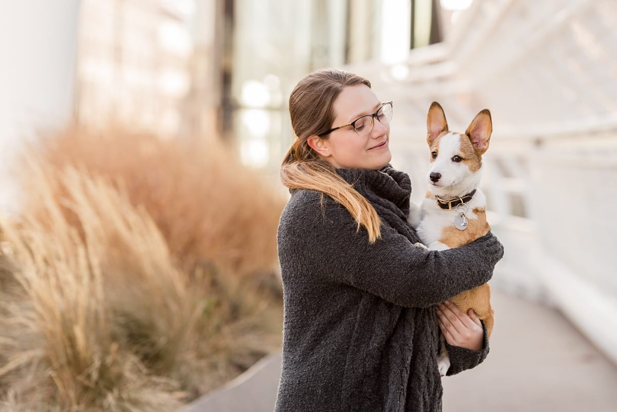 Contrary to popular belief, the middle of winter in downtown Denver is actually great time for family portraits with pets! Being in a state that has weather has unpredictable as, well…this little puppy, we were happy that the sun showed up this winter afternoon! We met the Kennedy family at Denver’s Millennium Bridge, which is known for its unique architecture.
