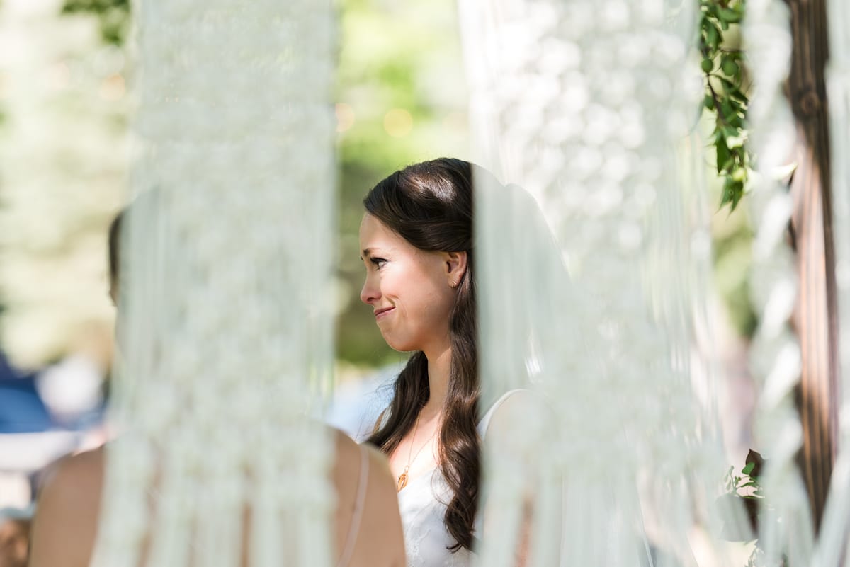 This philosophy was greatly reflected in the decor, as much of it was DIY! Nearly all the furnishings were created by the bride and groom themselves, or by friends and family. Dawn’s father and brother created their gorgeous wedding arbor, which we still can’t believe was handmade! Dawn, her mother, and her sister-in-law handled all the painted decorations, such as many of the signs and the invitations. Moreover, just about everything that wasn’t handmade was borrowed or thrifted! The happy couple exchanged their vows on an amazingly colorful rug which belonged to Dawn’s sister.