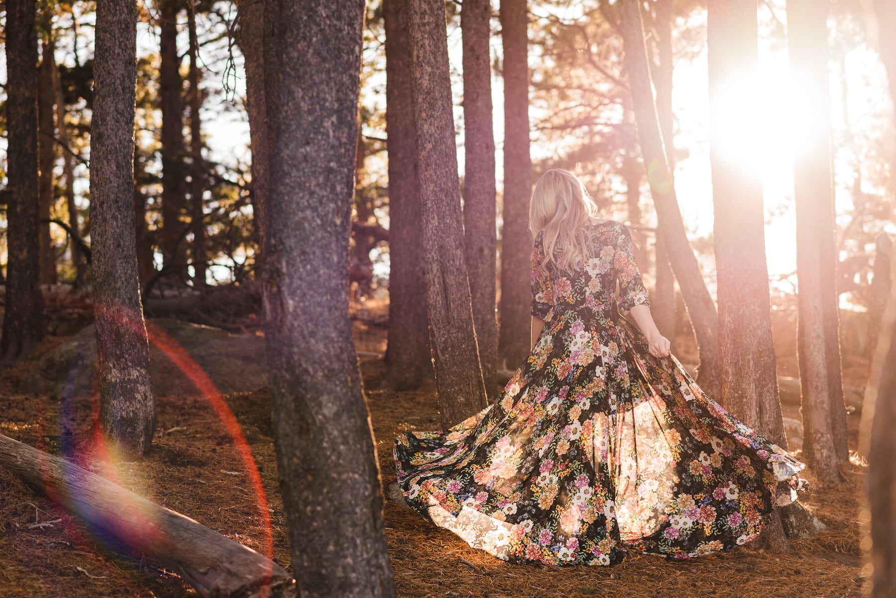 To add to the beauty, Rachel looked divine in her Anthropologie dress! It had a perfectly floral fall vibe and we especially loved how the light bounced through the bottom of it. Photo tip! Always remember to pack a floral dress perfect for twirling when heading to the mountains.