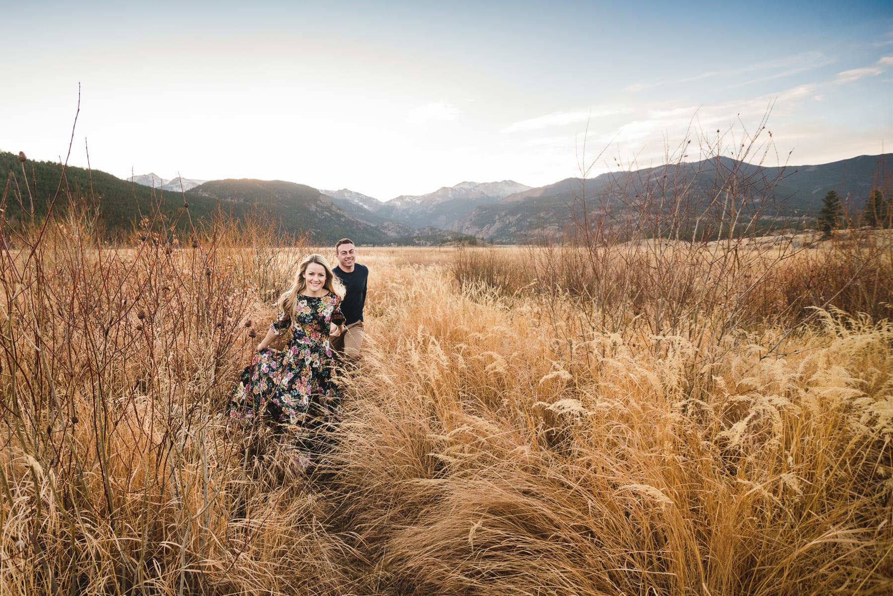 This Rocky Mountain National Park engagement session also involved a little hiking! The one-mile loop turned out to be the perfect amount of walking to find a wide variety of backgrounds, without being overwhelming. Rachel and Hunter are adventurers and weren’t afraid to walk into the tall grass or sit on the damp ground. As photographers, we’re always thankful when our subjects don’t worry too much about getting a few leaves on their clothes. We promise the photos will always be worth it!