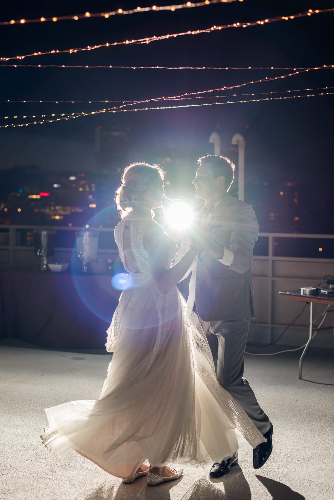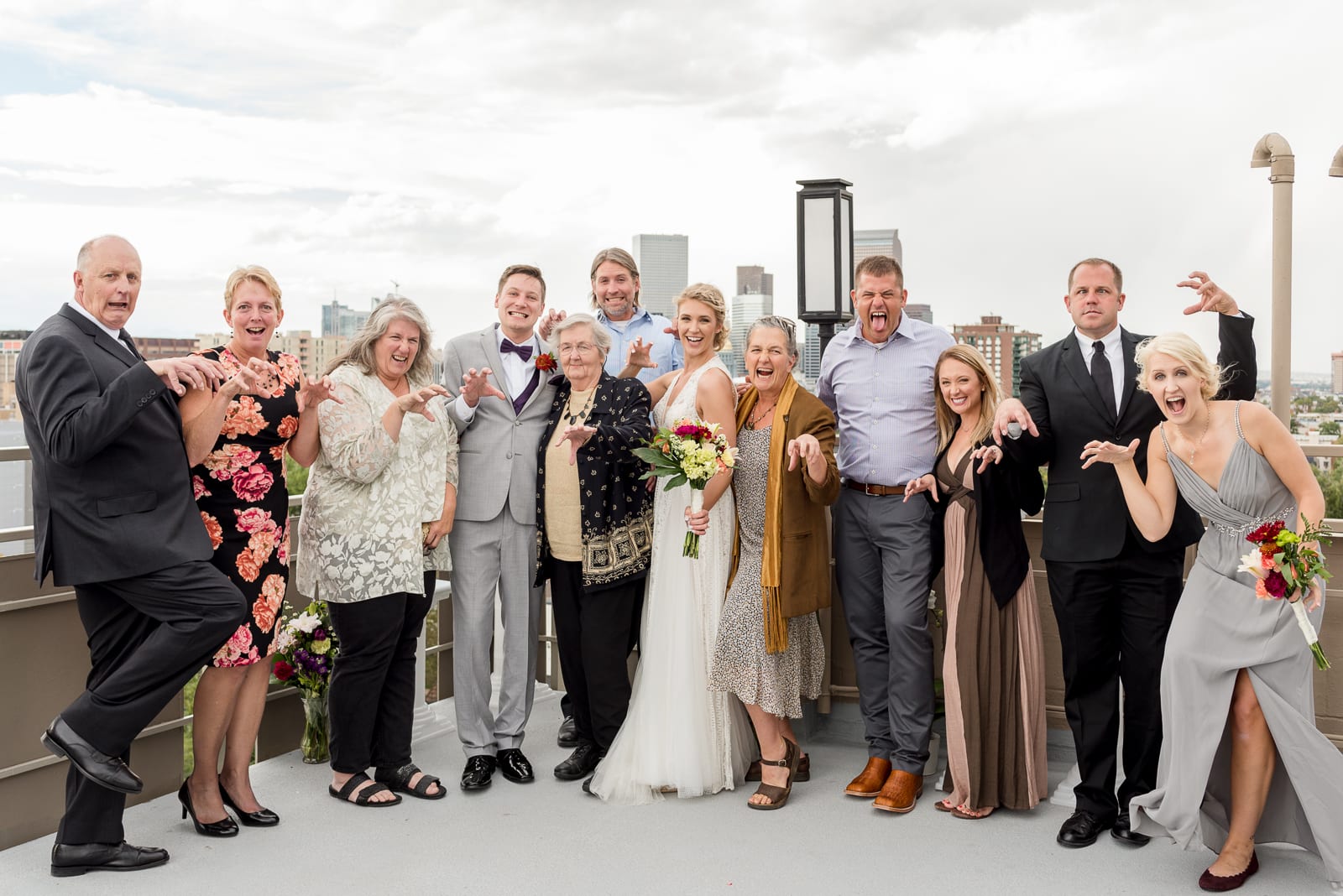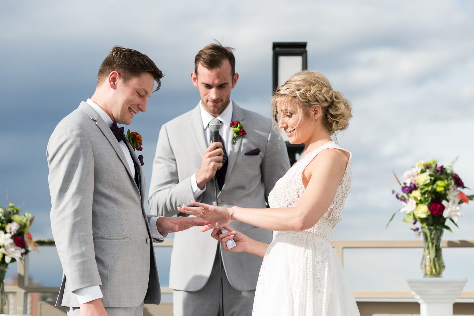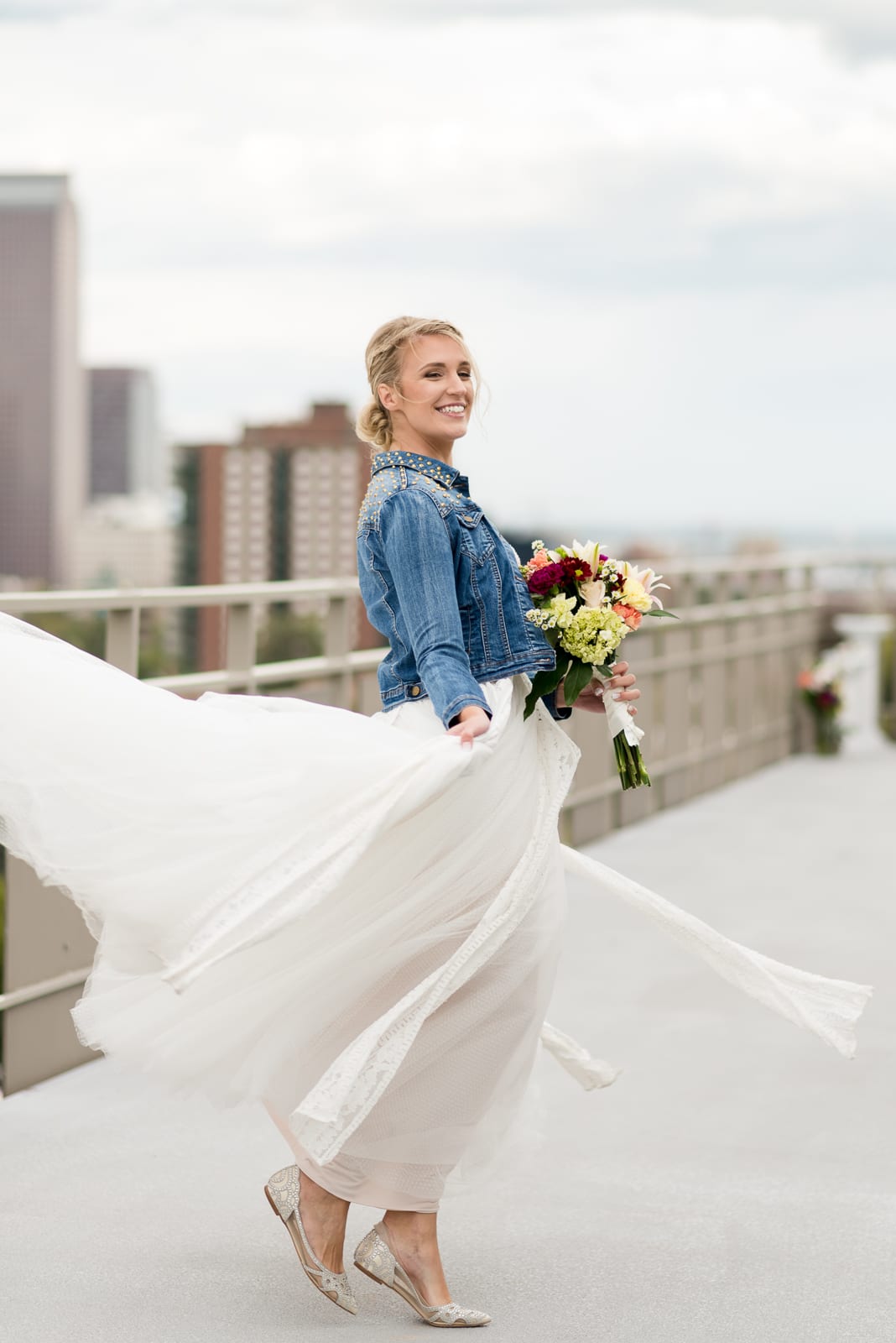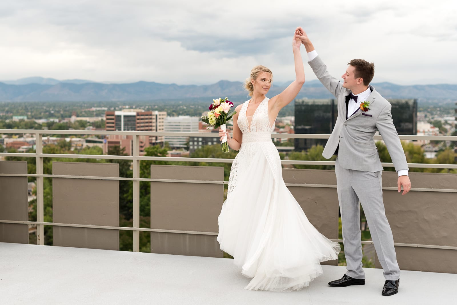 Unable to decide between a large wedding or an elopement, Brianna & Ben decided on something somewhere in between: A picturesque rooftop wedding in downtown Denver! With beautiful views of downtown and their loved ones all around, the couple’s special night was perfect. True to Denver, the evening brought two small rainstorms, cooling off the night to a wonderful 70 degrees, perfect for dancing the night away! The couple even spent time together the night before the ceremony preparing a playlist just for dancing.