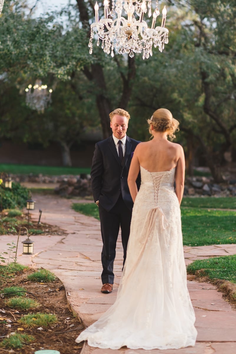 Traditional marriages dictate that it’s bad luck for a groom to see the bride before the ceremony, but what happens when couples break tradition and opt for a first look? One word…magic. For those of you who haven’t heard about this crazy trend, a first look is when a couple gets to see each other in their suit, dress, etc., before the ceremony. It is an incredibly intimate moment that allows the bride and groom to spend a few moments alone without the pressure of an audience.