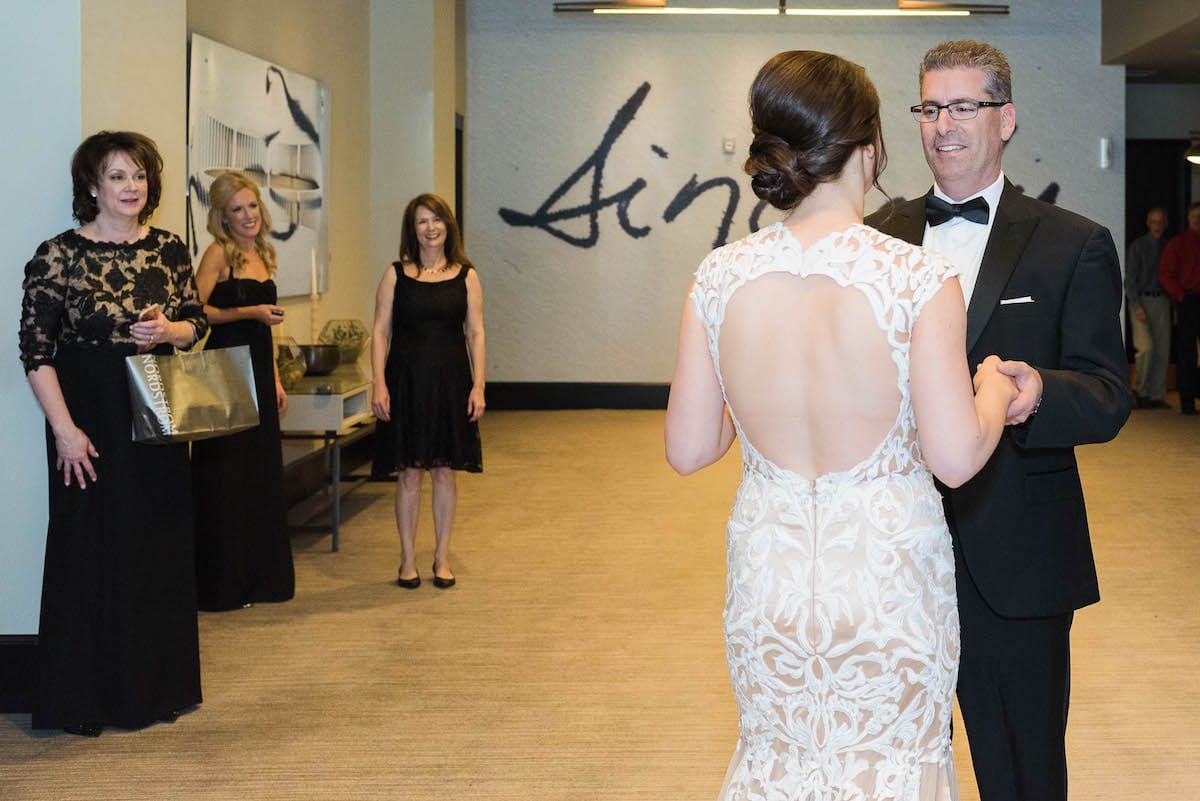 First looks aren’t just for the bride and groom though! Many brides choose to do a first look with their dads, a moment that is just as–if not more–special than a typical first look. Nothing is more heartwarming than a bride’s father tearing up as he sees her in her dress for the first time, and the love that fills the room as he prepares to walk her down the aisle is incredible to witness.