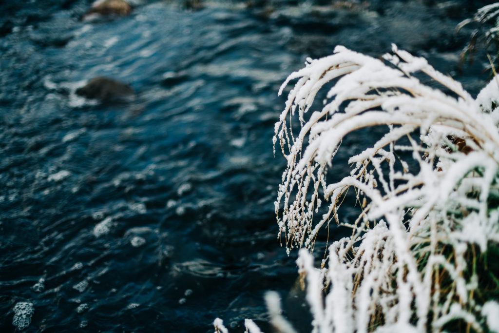 How gorgeous are these deep shades of wintery blue? The contrast between the water and the snow-frosted plants is so dreamy.