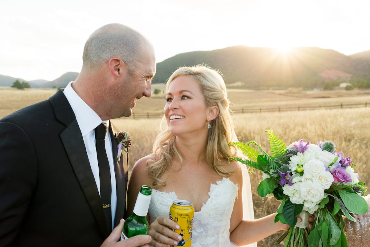 The bride and her closest gals looked gorgeous, but did you see how handsome Mike and his groomsmen looked? We’ve decided that you can never go wrong with a sharp, black suit. Even if you’re a baby! The golden hour of sunset proved to be the perfect time for Spruce Mountain Ranch wedding pictures, and the perfect time to crack a cold one.