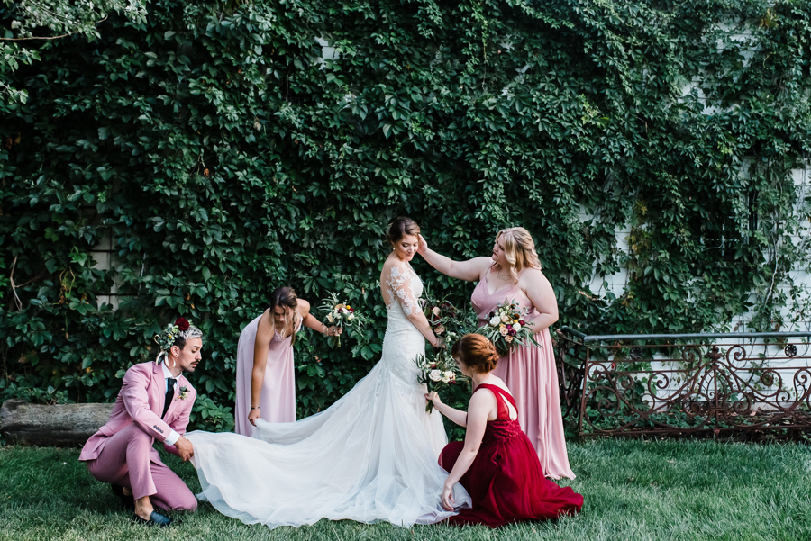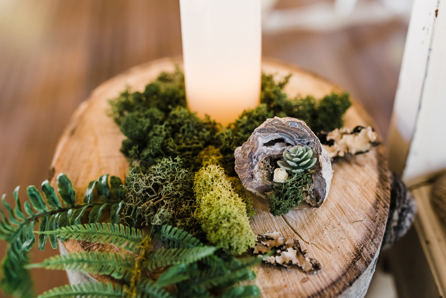 They couldn’t have pulled off their perfect wedding without a ton of help from their families! The ceremony space bosted hand-cut and assembled tree stumps and forest decor, as did all of the tables at the reception. The woodland themed wedding was on point with handmade decor & lots of little mushrooms. Complete with mushroom cupcakes!