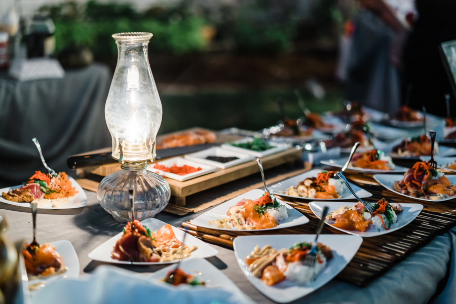 At Lionsgate Event Center there were several food stations that their families designed, assembled, and cooked for as well! This is where is important to know that Kaeli’s dad is a chef and her family owns their own restaurant! How amazing is that! Each food station was a different theme based on the different things they had done together. One for germany, one for the cheese shop where we did engagement photos, one for Japan, and one for thailand I think. There was also a Harry Potter dessert station with butterbeer floats! (They were really good.)