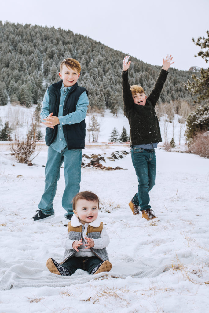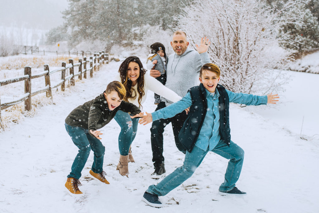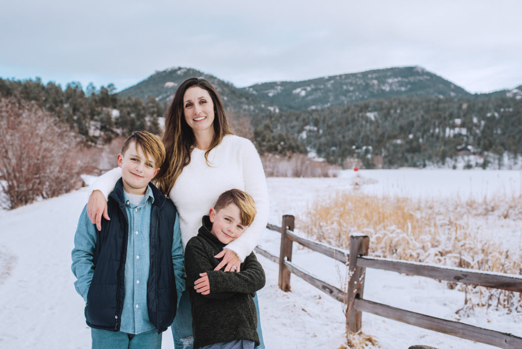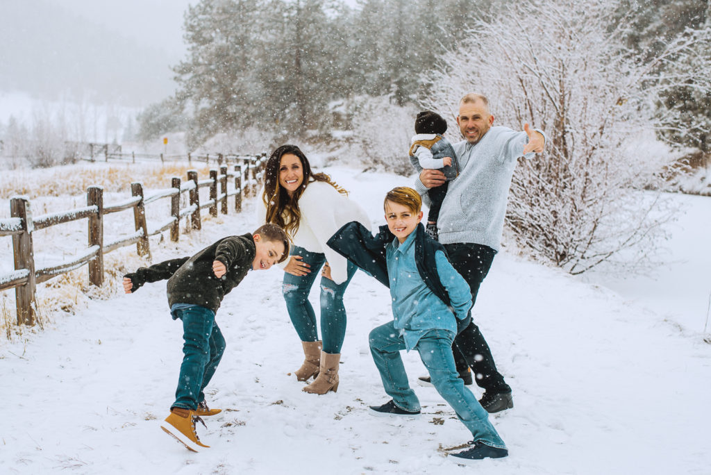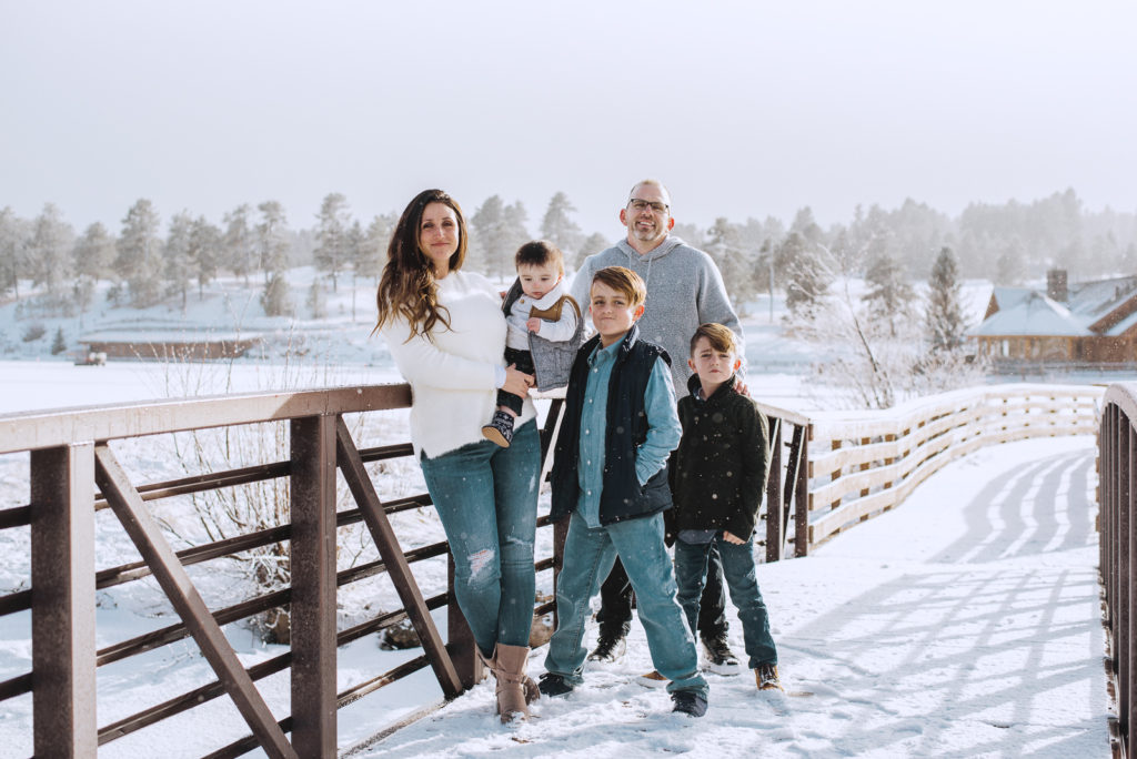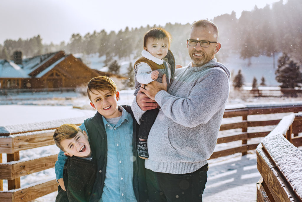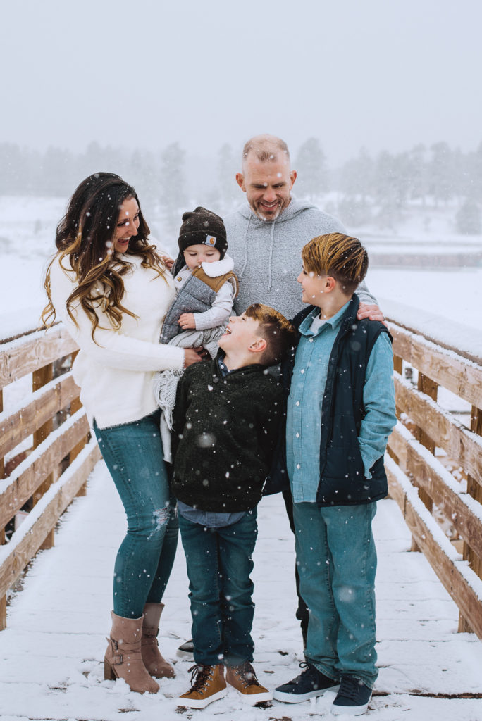 When we arrived at Evergreen Lake, the weather wasn’t in our favor. A snowstorm limited visibility to 50 feet and coated everything in fresh powdery snow. Naturally, we were worried about the family, especially for little Vonn. But, in typical Colorado fashion, the sun parted the cloudy sky and the winds slowed down. It was a photographer’s dream!