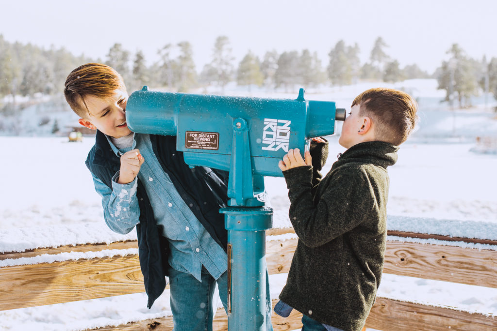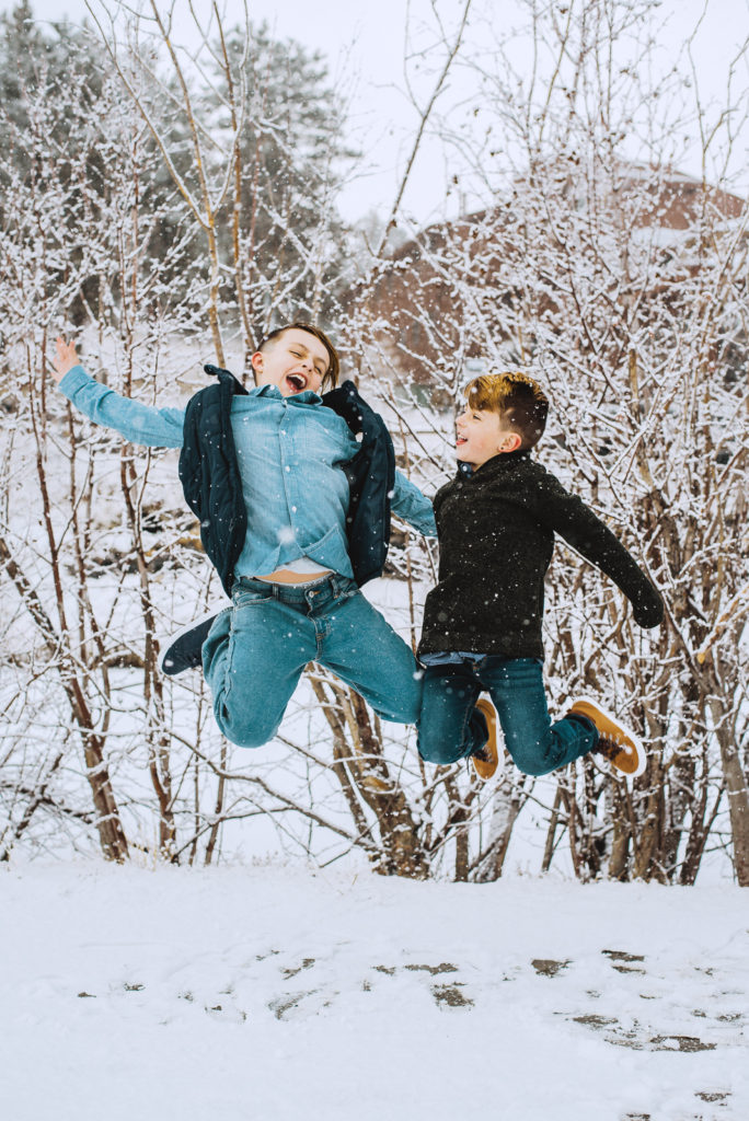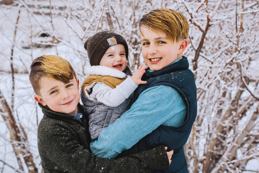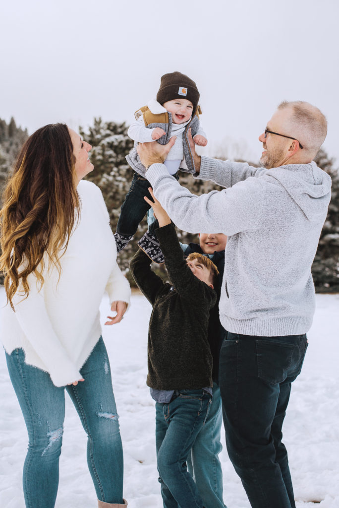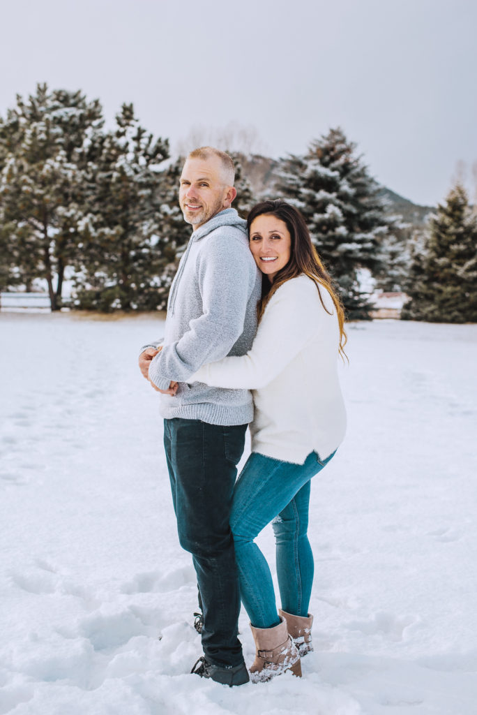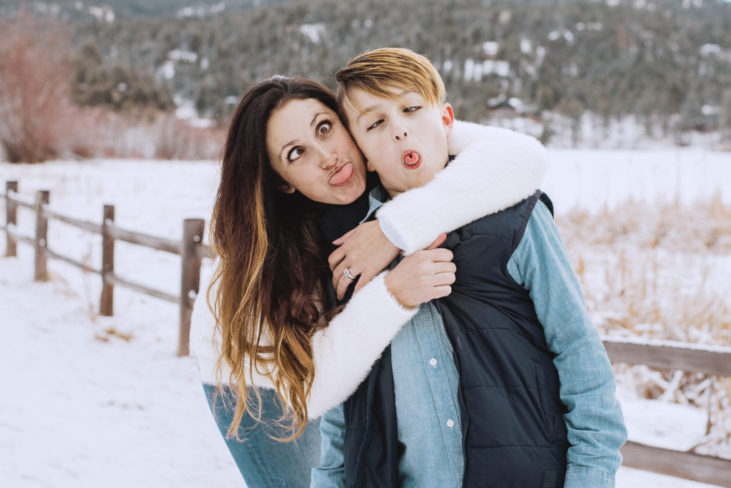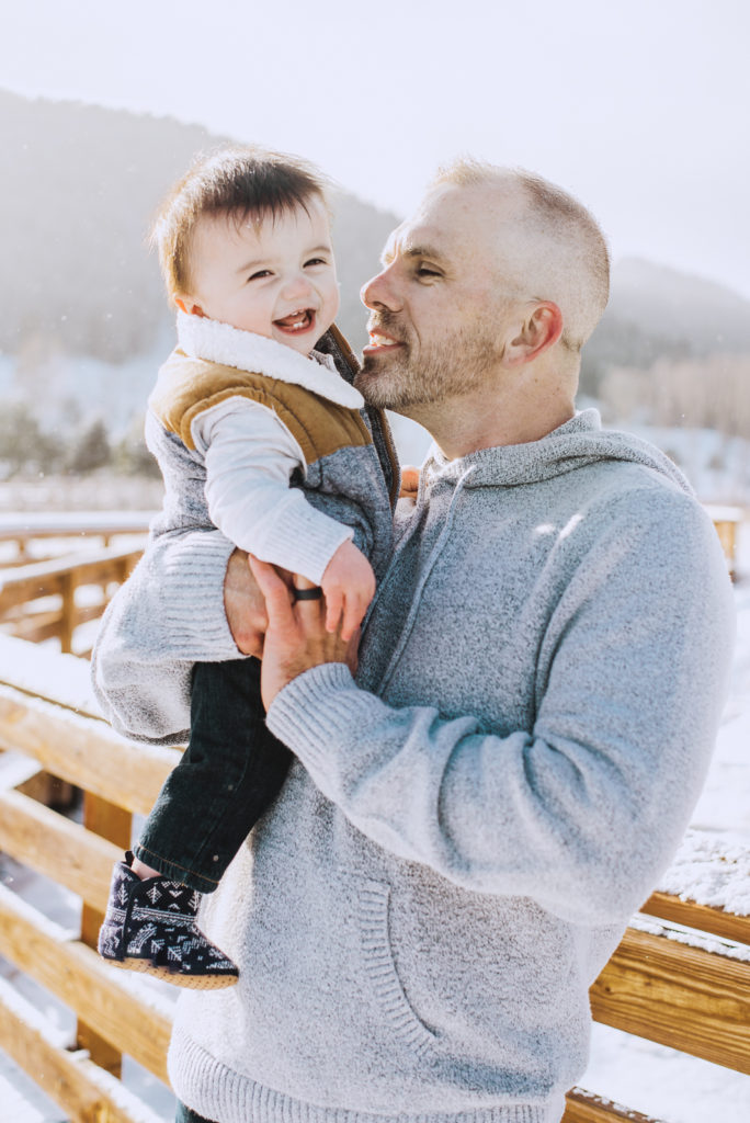 When we arrived at Evergreen Lake, the weather wasn’t in our favor. A snowstorm limited visibility to 50 feet and coated everything in fresh powdery snow. Naturally, we were worried about the family, especially for little Vonn. But, in typical Colorado fashion, the sun parted the cloudy sky and the winds slowed down. It was a photographer’s dream!