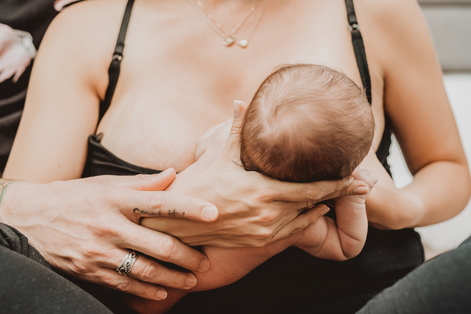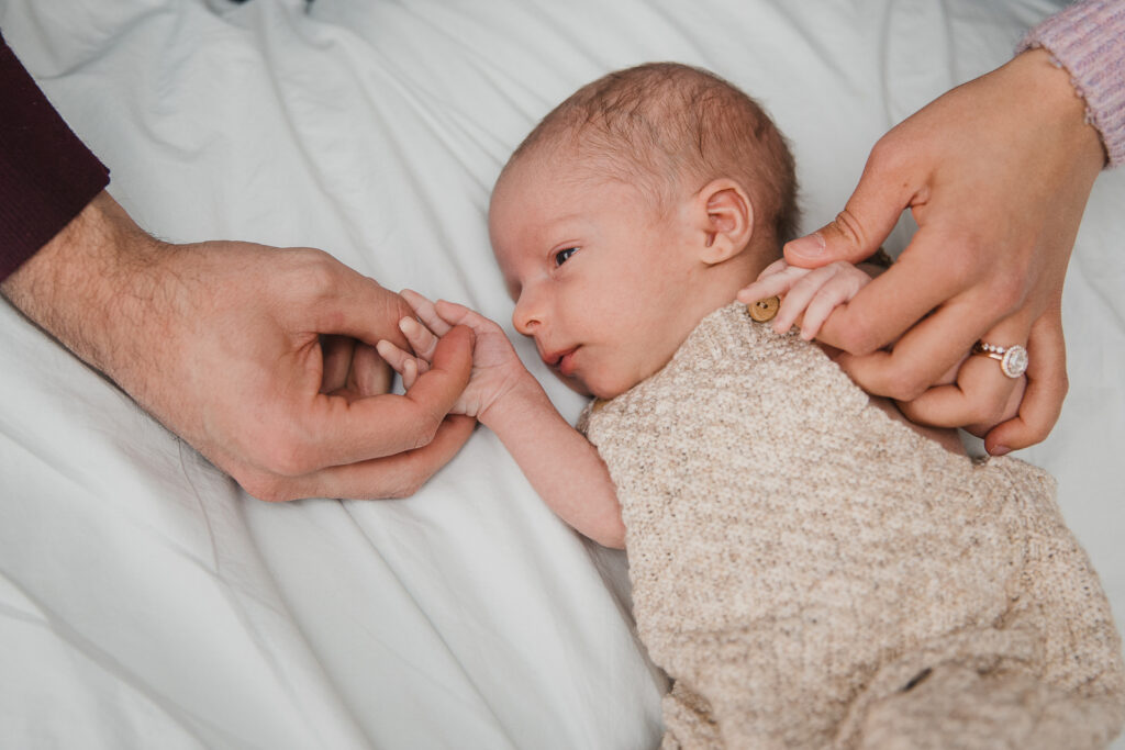 To make sure everyone is comfortable, we typically photograph newborns in your home. The baby already knows the location, plus you have everything you need there. You might be panicking already. But don’t worry! We have seen countless houses post-baby so we understand that life will be a little crazy. If there are a few spots you might like to utilize such as the nursery and the living room, it may be good to prep a few spots and make them tidy before the shoot as best you can.