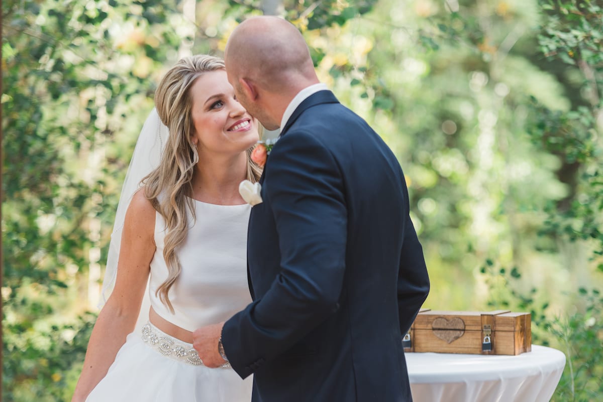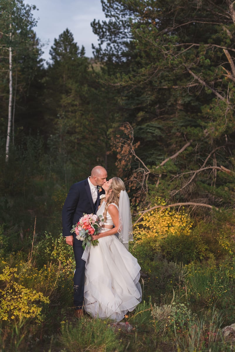 It is clear that Colorado is a gorgeous state to get married in. More specifically, the Donovan Pavillion in Vail, Colorado did not disappoint. Not to mention, all the gorgeous scenery for that matter! Kelly’s two piece dress was gorgeous, radiating elegance. A heart-shaped piece of blue fabric sewn to the waist of her dress, that held a lot of significance to Kelly. The blue fabric was a piece of a shirt that belonged to her late grandmother. We love how she utilized old wedding traditions, adding something blue to her wedding day that meant so much to her!