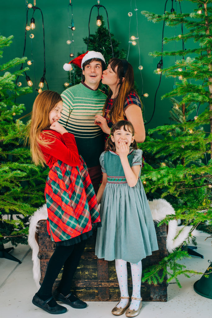 Therefore, let’s not focus on the dreary vibes of 2020 – let’s talk shop! Who doesn’t love Christmas photos? Here at From the Hip Photo, we’re offering in-studio holiday photos. This lovely set up in our open-air studio, against our stunning green wall with Christmas trees dropping with lights, is a great opportunity to gather the family or friends together for an upbeat and exciting end to 2020. Plus, our mask-wearing elves and our open-air studio will keep you extra safe!