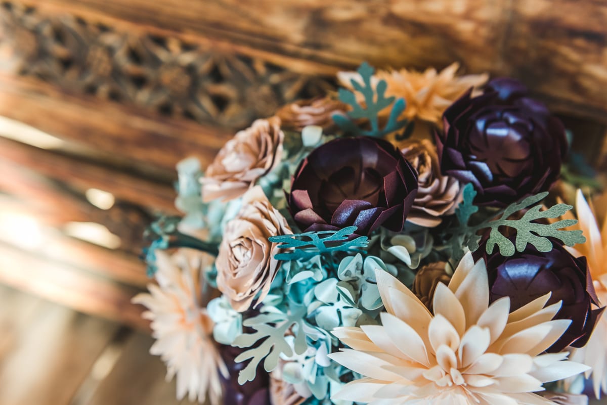 Victoria looked stunning in her off the shoulder gown, garnished with a wide embellished belt. She held a bouquet of paper flowers that she made herself. DIY wedding details are always charming and we are big fans of how they can help make aspects of your special day even more meaningful.
